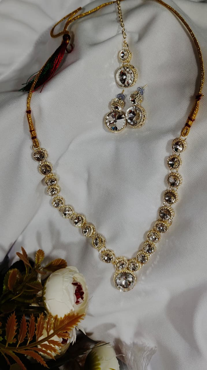 Gold Plated Kundan Necklace Set Earrings Maang Tikka