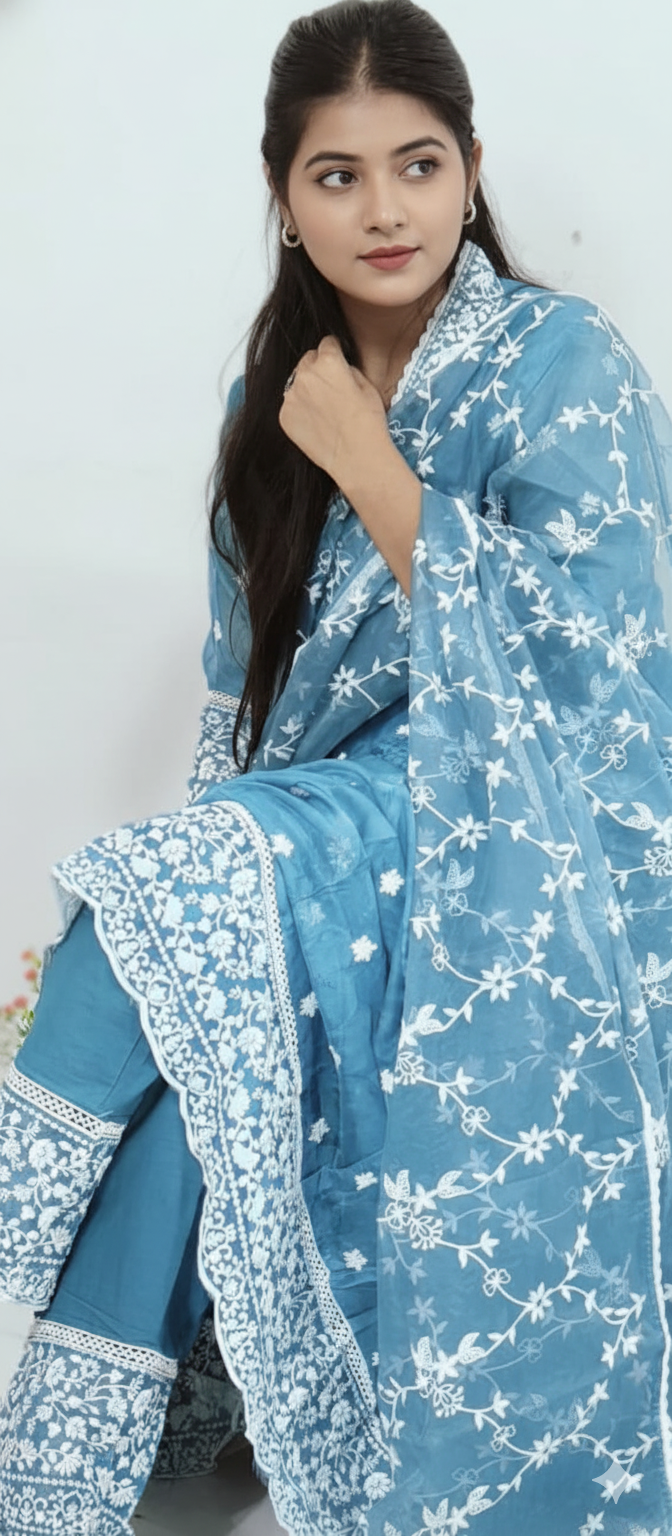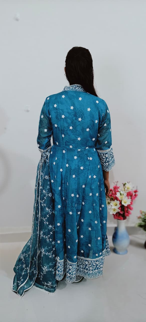 1 review for Teal Blue Embroidered Anarkali Suit Set